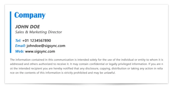 Add only needed things in the disclaimer such as company name, address, and the other details which is a legal requirement for company email.