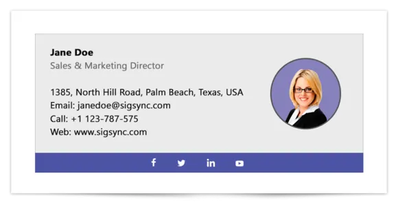 Sigsync signature gallery offers hundreds of ready-to-use email signature templates to meet all your needs. You can use these email signature templates as a starting point and easily customize them by editing its fields, including text, images, color, and font, to create a professional signature in just a few minutes.