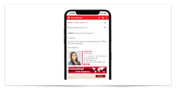 Sigsync email signature solution can remove the default mobile signatures and replace them with a professional email signature that reflects your brand.