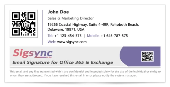 With Sigsync email signatures, you can create vCards with QR codes which makes it easy for people to scan and save your contact information in a single click.