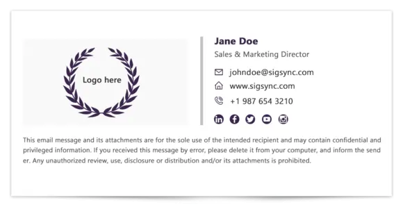 Sigsync offers an extensive range of customization options for your Office 365 email signature. With support for images, icons, graphical banners, logos and social media icons, you can create a visually appealing and professional signature that effectively represents your brand. By crafting targeted and personalized messages and including them in your email signature, you can engage with your audience, promote your brand, attract new customers, and drive traffic to your website. With Sigsync, you can ensure that your email signature not only looks great but also effectively communicates your brand message and values.