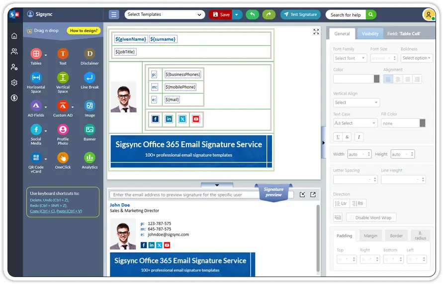 Sigsync Signature Generator built-in components can be used to create professional email signature with ease.