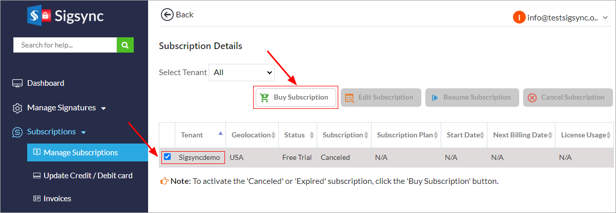 How do I cancel the Sigsync subscription?