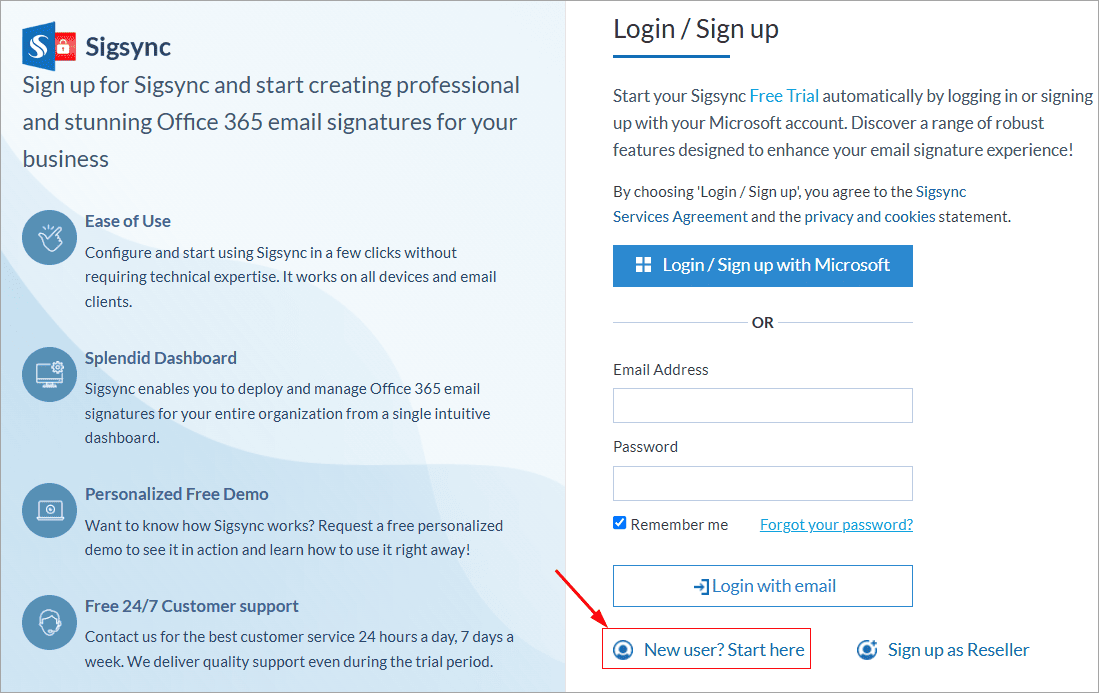 How can I start a free trial account with Sigsync?