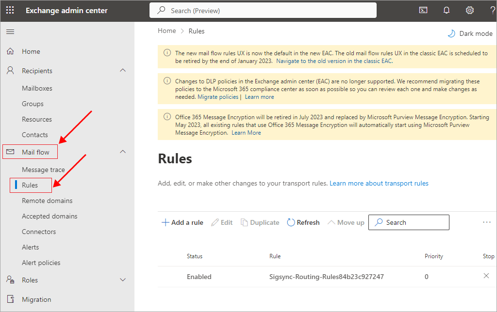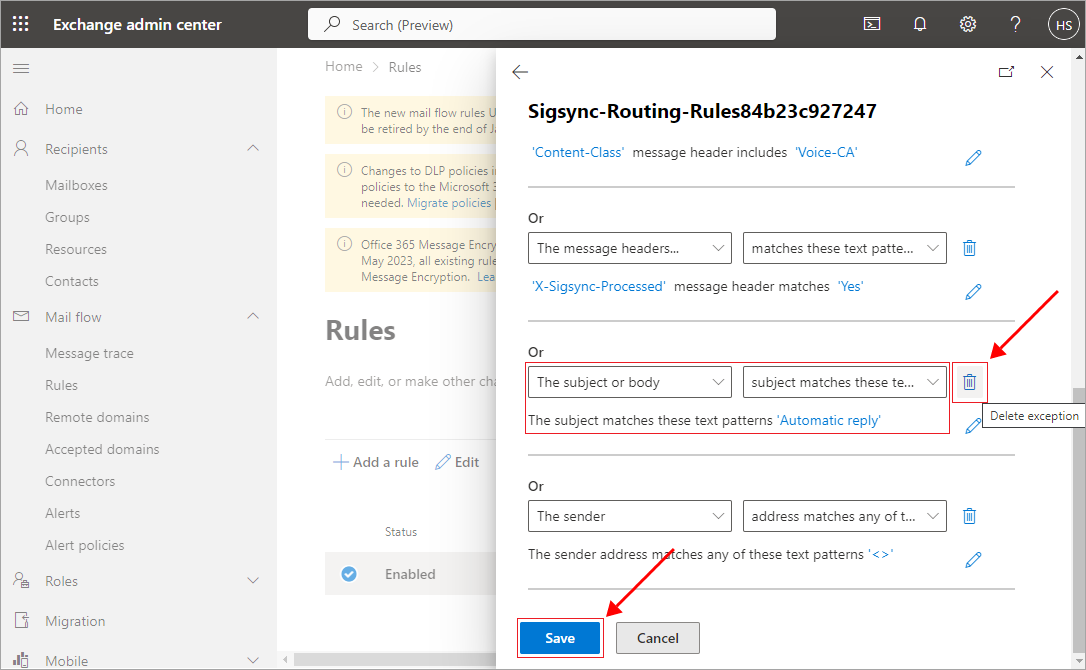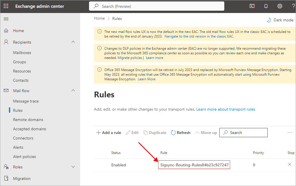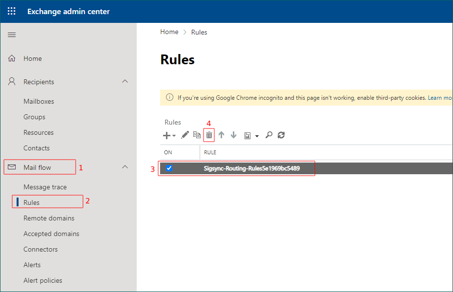How to remove Exchange Online Signatures and Rules configuration?