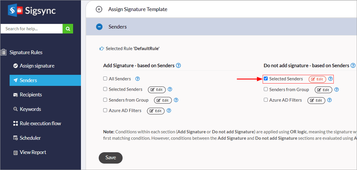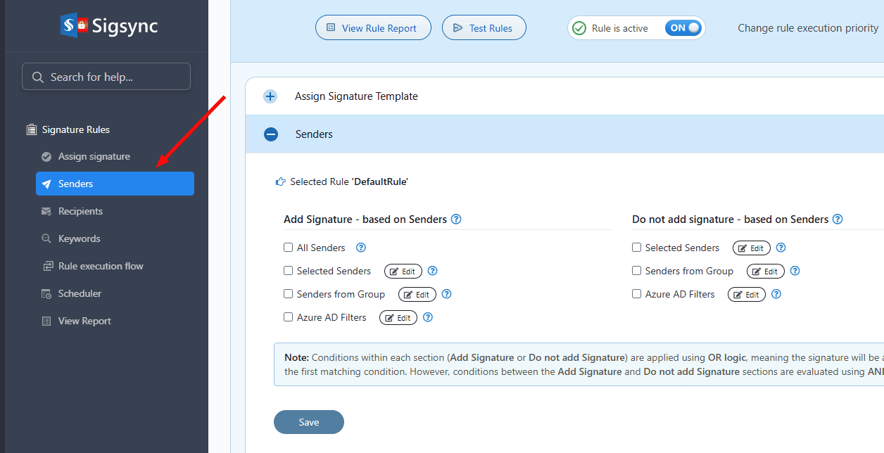 How do I enable signatures only to a specific Active Directory Groups?