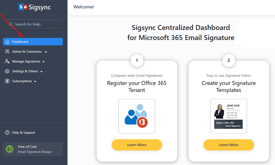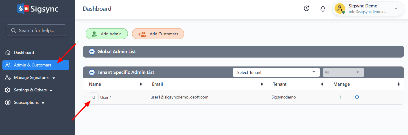 I have one or more Global admins in Office 365. Is there any default settings to allow these admins to manage Sigsync dashboard?