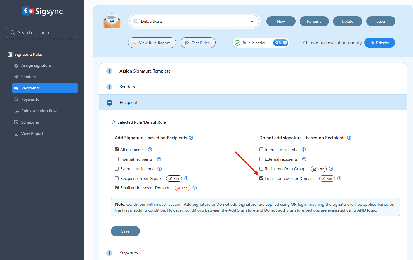 Is there a way to restrict email signature to a specific receiver?