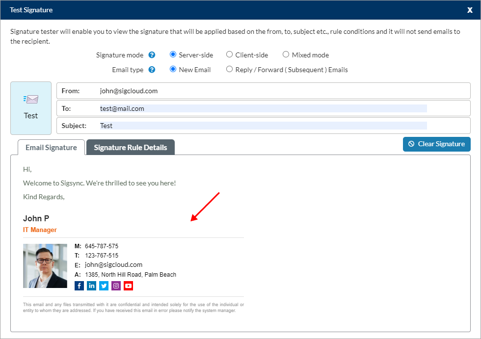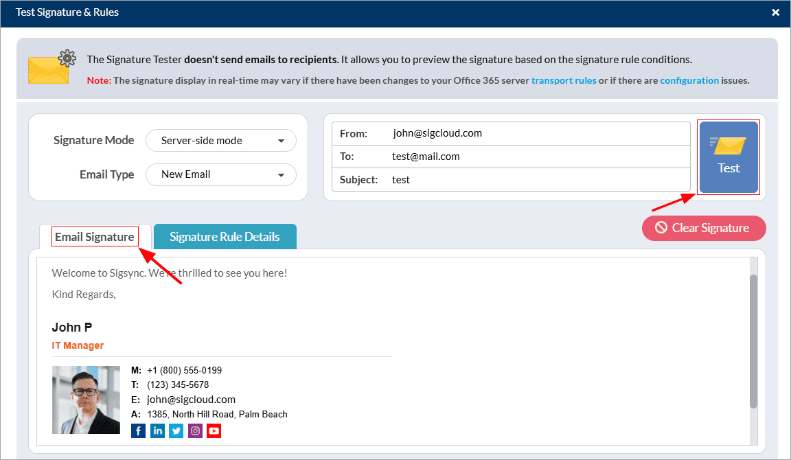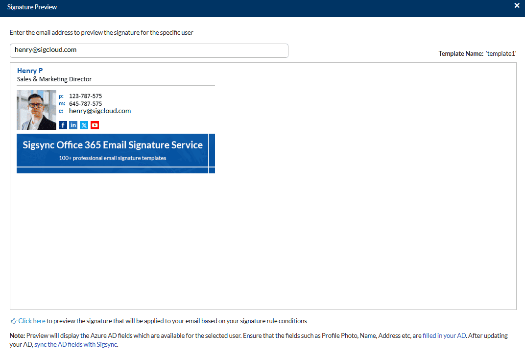 Sigsync email signature service provides effortless, centralized signature management for Office 365 and Exchange. Our team can assist you in quickly setting up company-wide signatures. Request a free on-demand demo to see how Sigsync can simplify your email signature management process.
