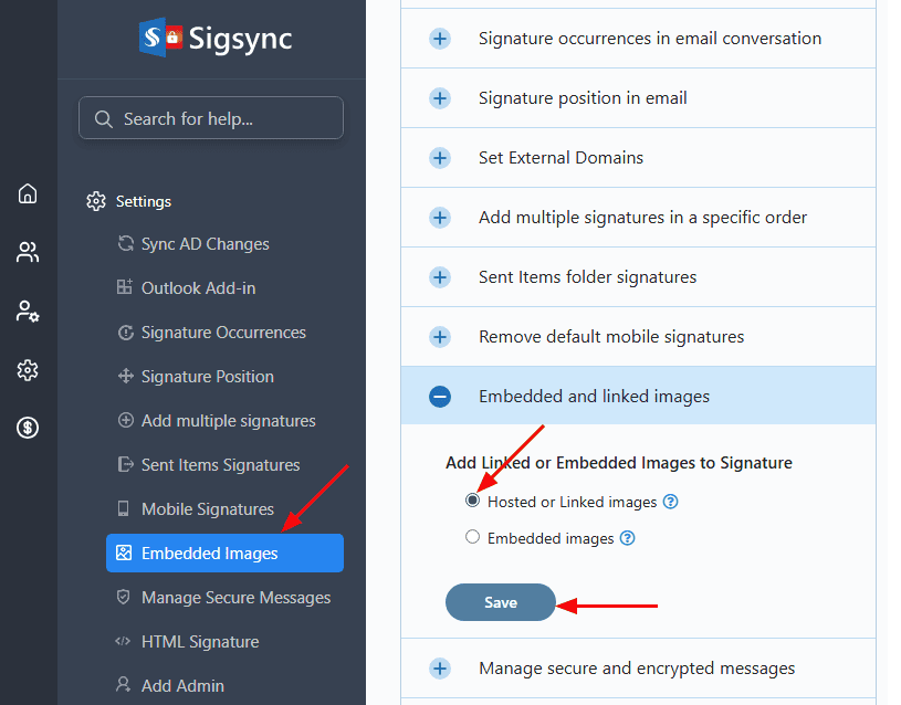 Go to the Settings tab, open the ‘Embedded Images’ section, select ‘Hosted or Linked Images’, and then click ‘Save’.