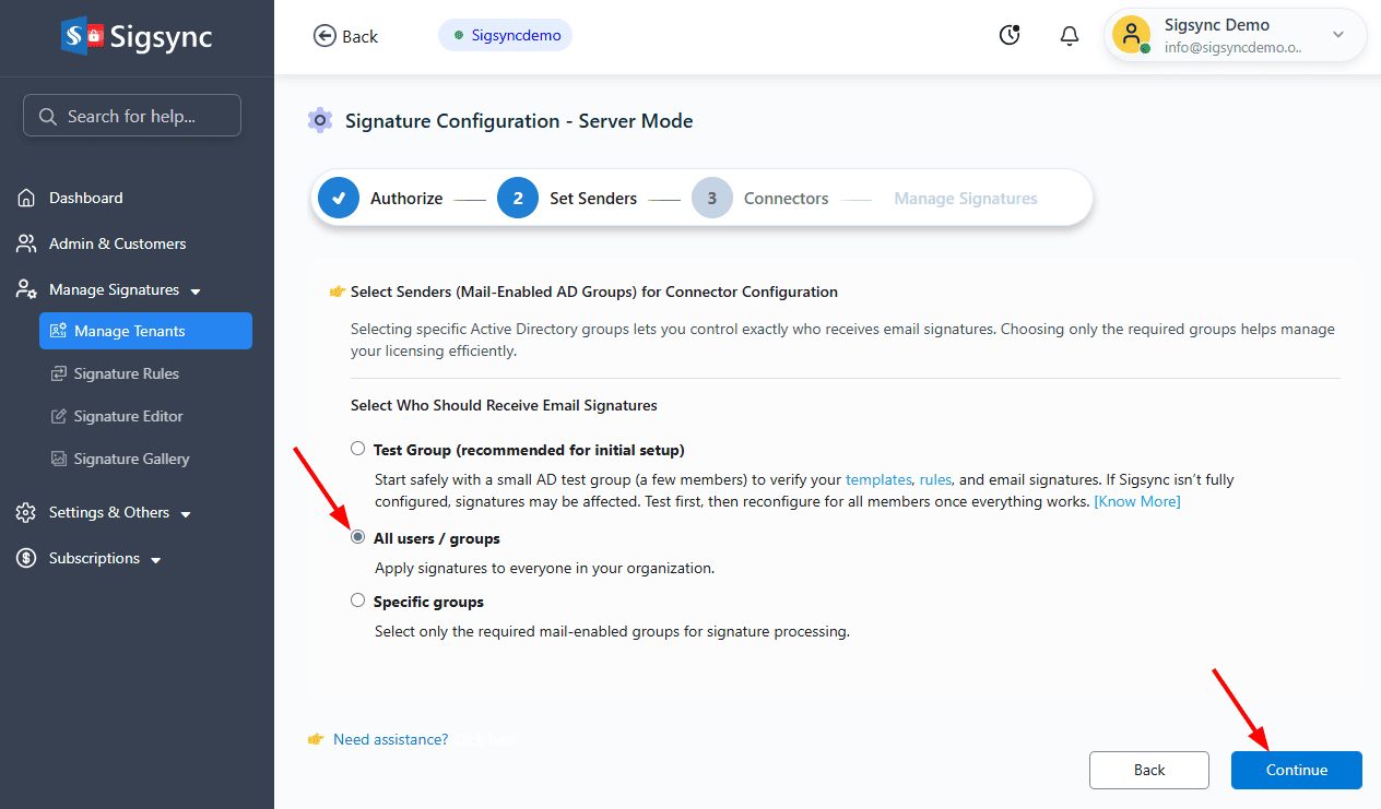 This option lets you apply signatures to every user in your Microsoft 365 tenant.