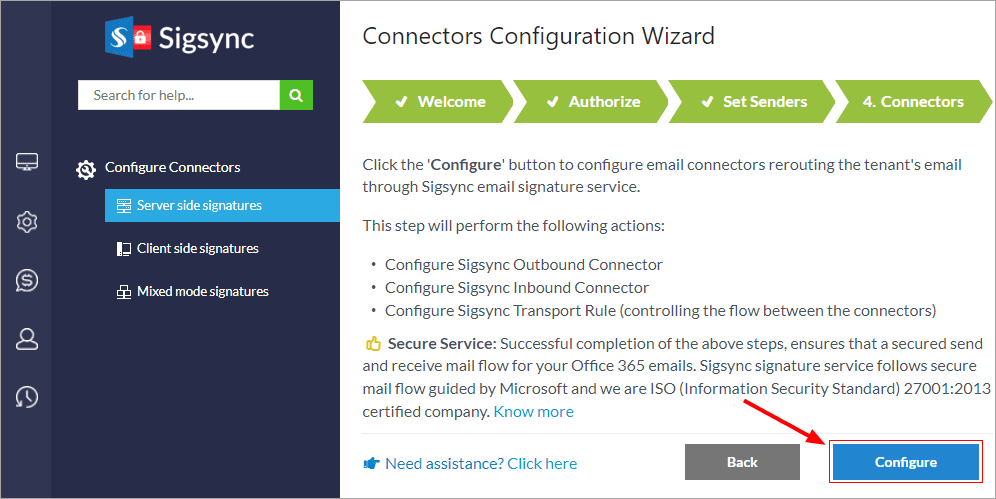 - Click the ‘Configure’ button to proceed with signature configuration.