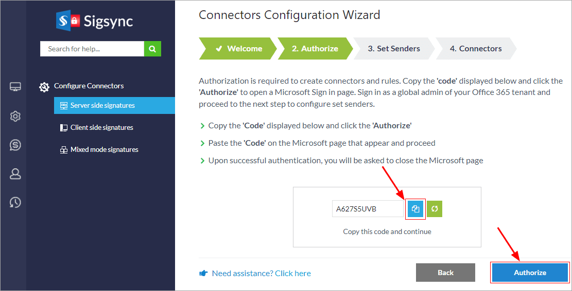 - Click the ‘Deploy Add-in’ button in the Sigsync dashboard and complete the deployment process in the Office 365 Admin Center.