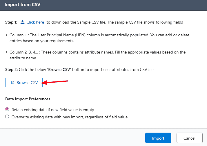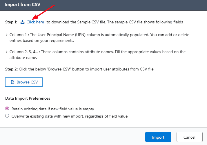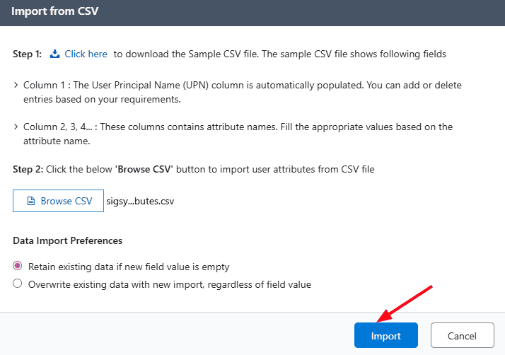 For instance, if you want to set custom attribute values for all users or specific users, you can simply update in the CSV file with the required attribute values and directly import it to apply the changes.