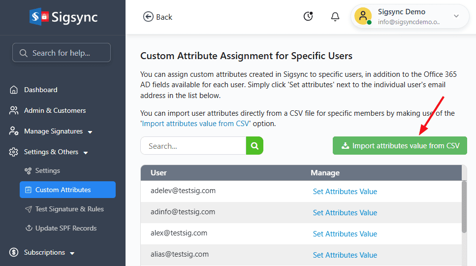 - Login to the Sigsync dashboard and navigate to ‘Settings & Others’ > ‘Custom Attributes’ tab.