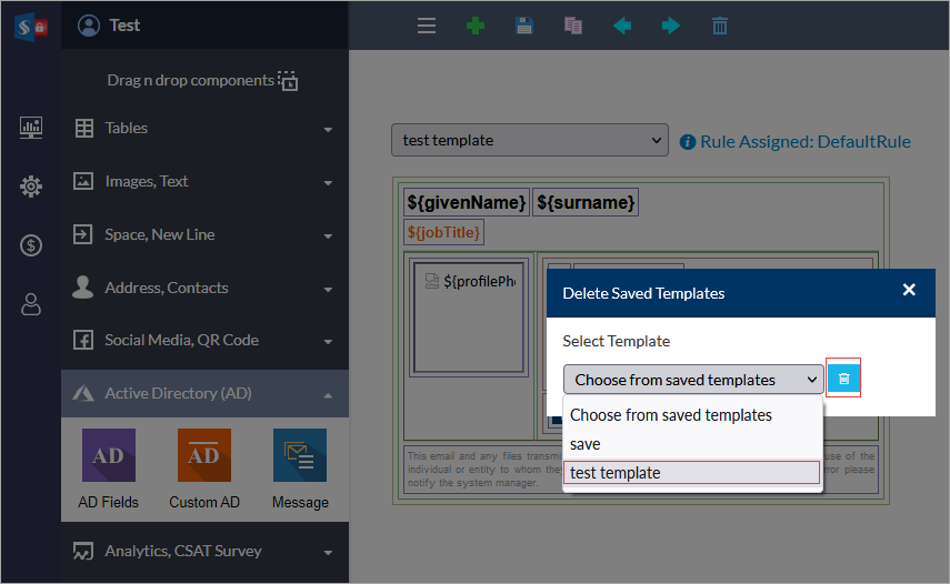 If required, you can delete the templates you created previously from the saved templates list. To do so, follow the below steps: