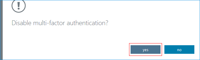 Step 4: Disable multi-factor authentication? Click the 'Yes' button as shown below.