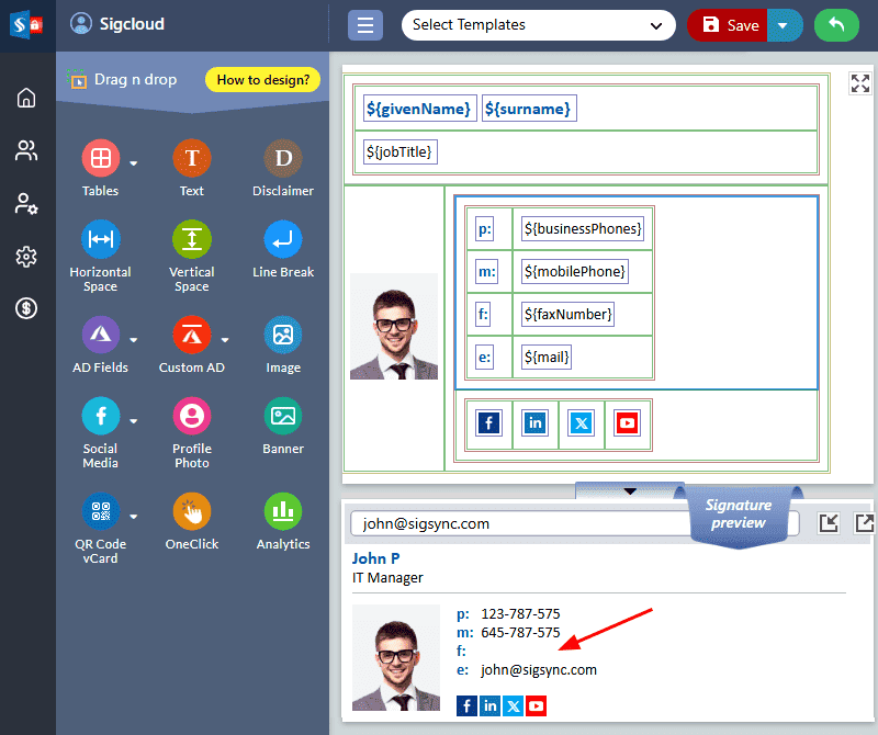 To remove this empty space in your signature, follow the below steps using Sigsync signature editor.