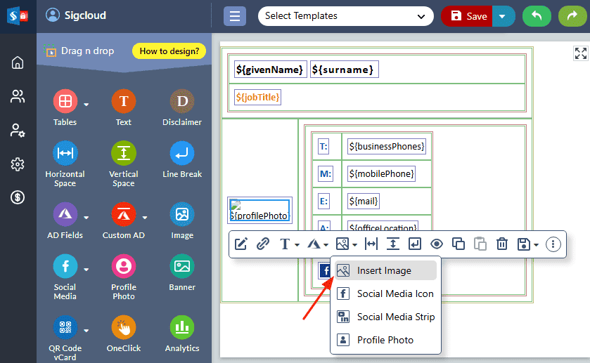 - Select the ‘Profile Photo’ field and click on ‘Insert image’