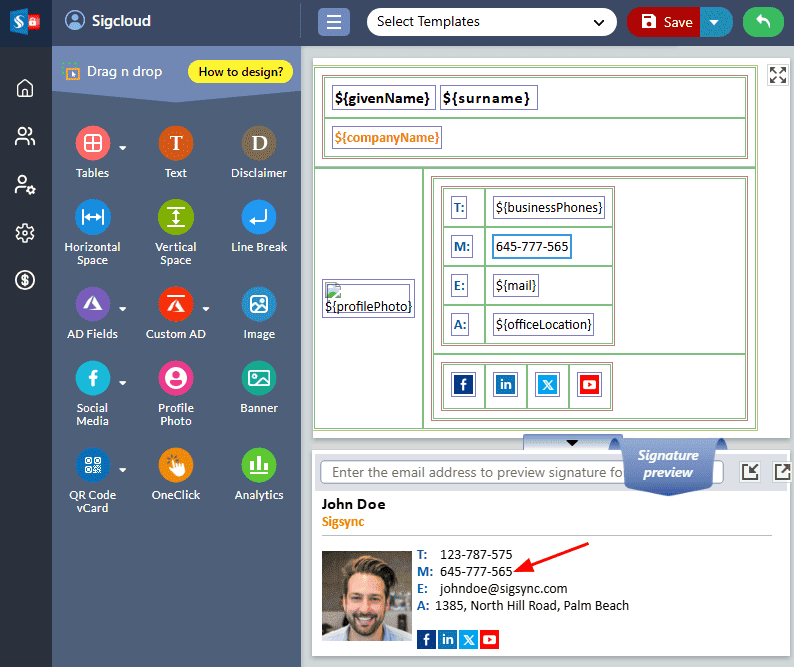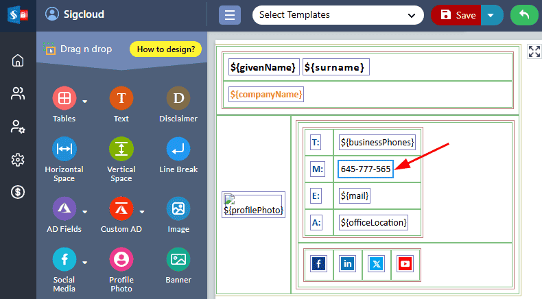 ‘Static Field’ property is useful when you want to hardcode the value for a field in your email signature that differs from the value stored in Azure AD.