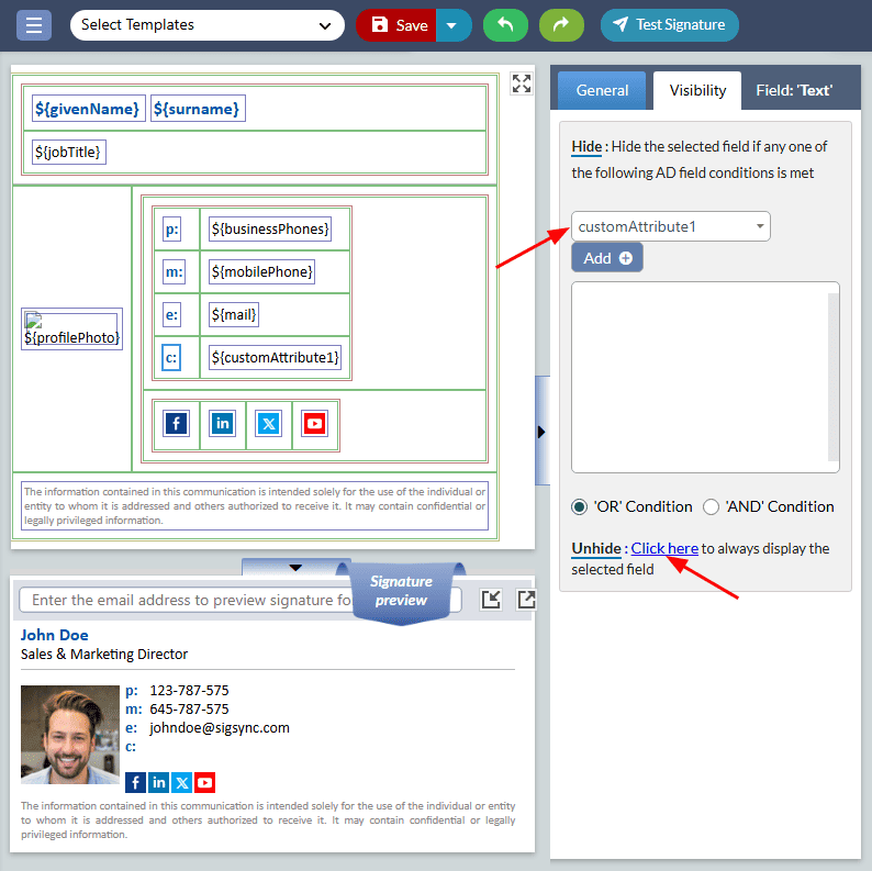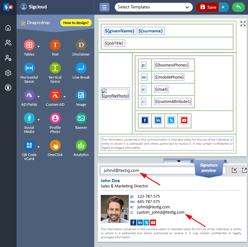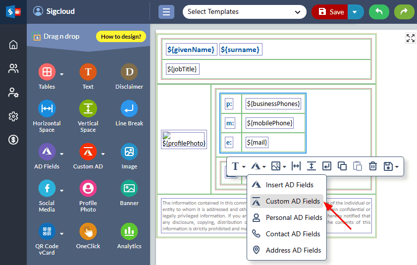 Office 365 has certain default Azure Directory (AD) attributes like city, companyName, department, displayName, jobTitle, email etc. These attributes are used to add personal and company information directly into your email signature.
