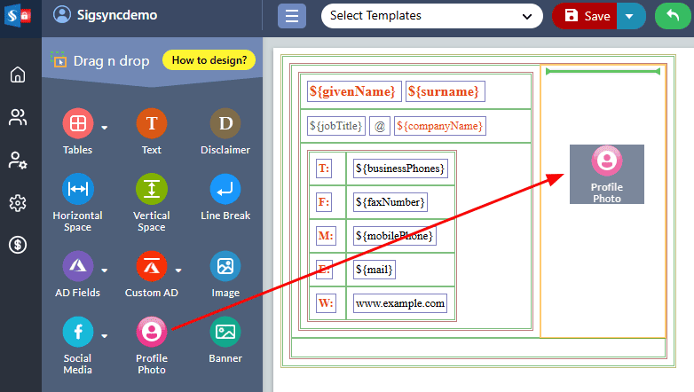To insert your Active Directory profile photo in your email signature using the 'Profile Photo' component in the Sigsync editor, follow these steps: