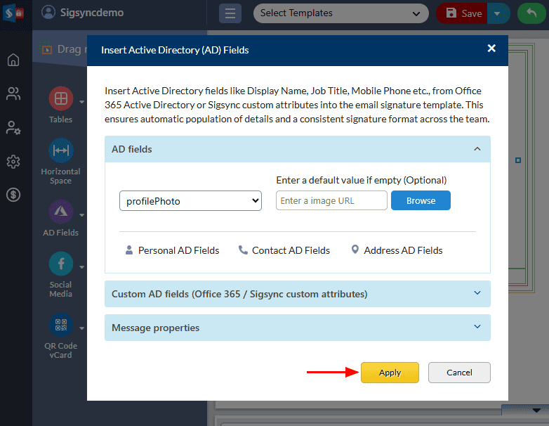 - ‘ProfilePhoto’ field is selected and click the ‘Apply’ button.