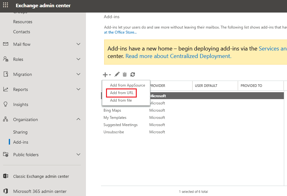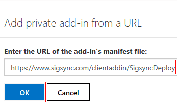 Under Add-ins, click on the '+' sign and select Add from URL from the drop down menu. Then, paste the link to manifest file given below to deploy the Client side Sigsync Signatures add-in for Outlook.