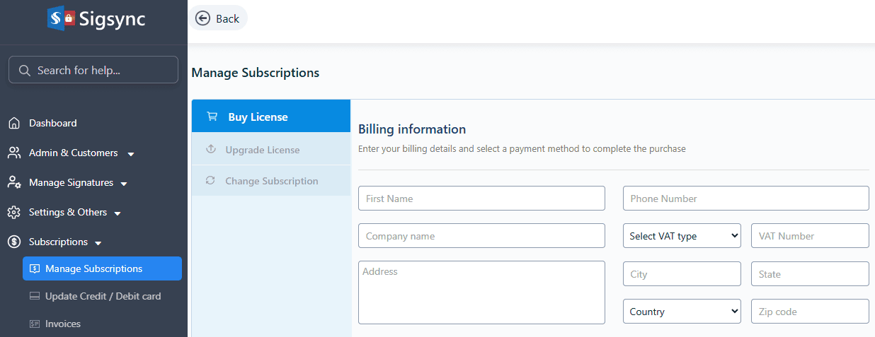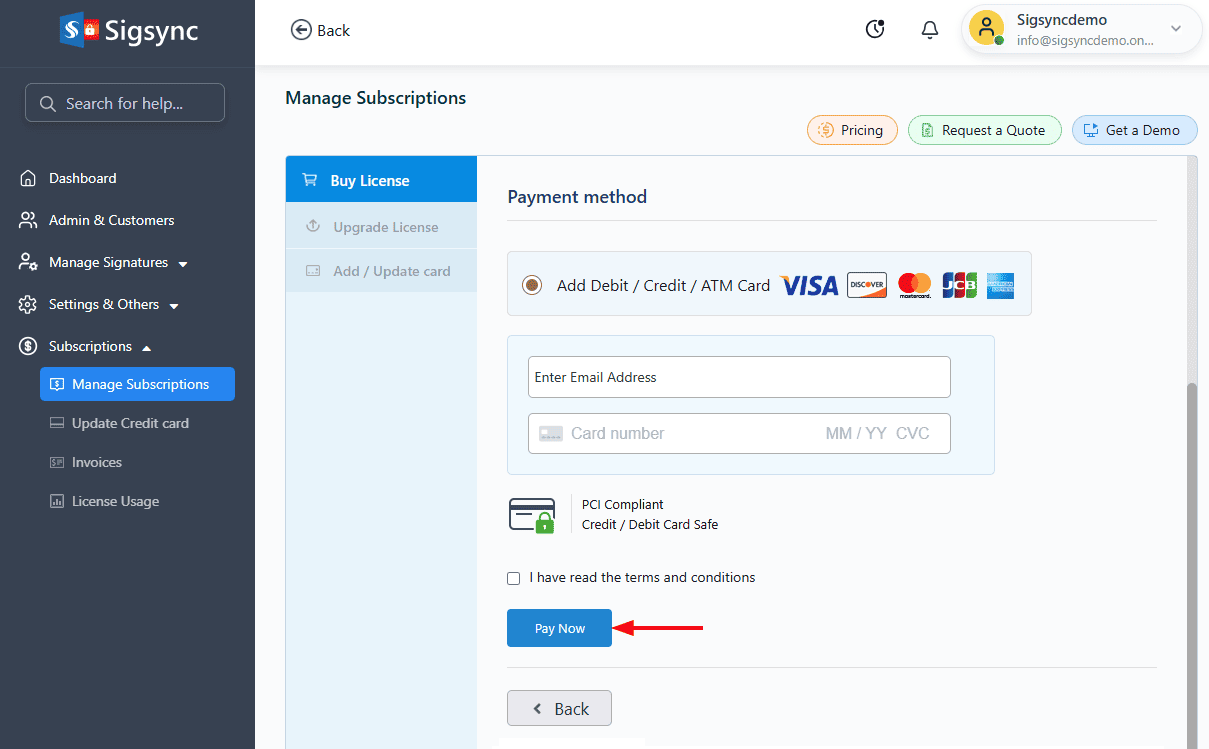 - If you have already raised a quotation request, log in to the Sigsync dashboard and proceed with the payment.