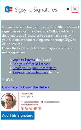 - Sigsync Signature Add-in for Outlook
