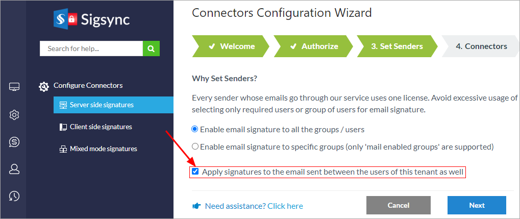 This option lets you apply signatures to every user in your Microsoft 365 tenant.
