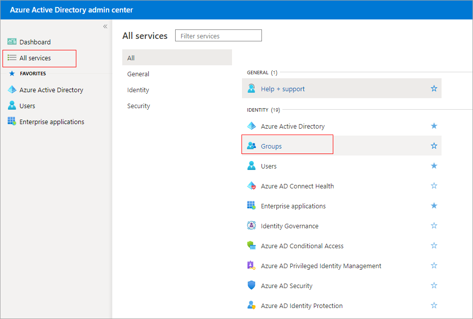 - Click All services in the left navigation menu, then select Groups on the subsequent page