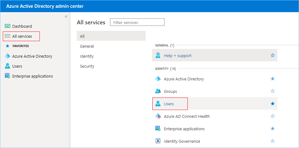 - Click All services in the left navigation menu, then select Users on the subsequent page.