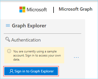 - Click the Sign in to Graph Explorer button. Sign in with your global admin credentials.