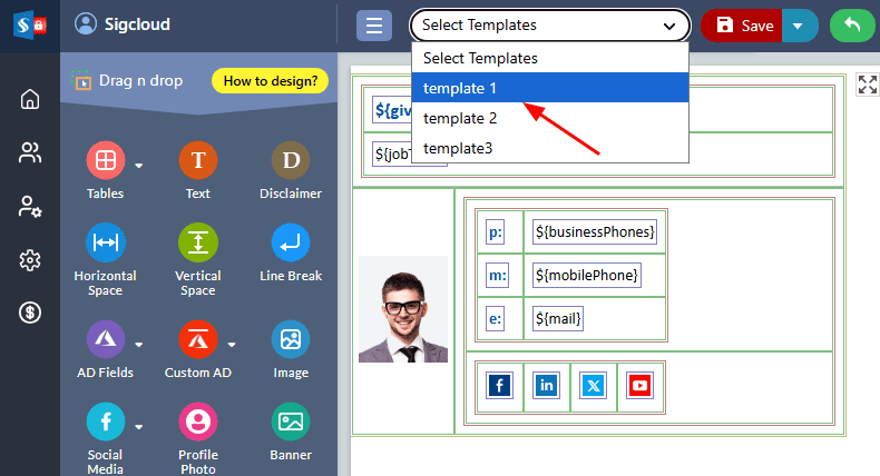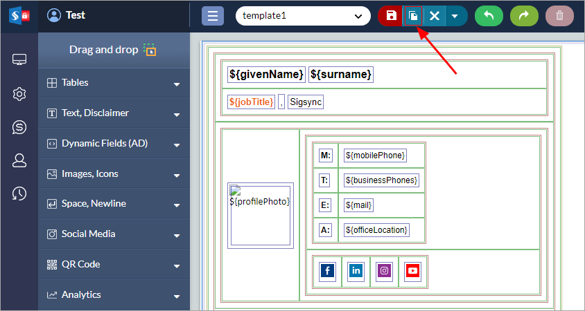 Follow the below steps to copy the signature template: