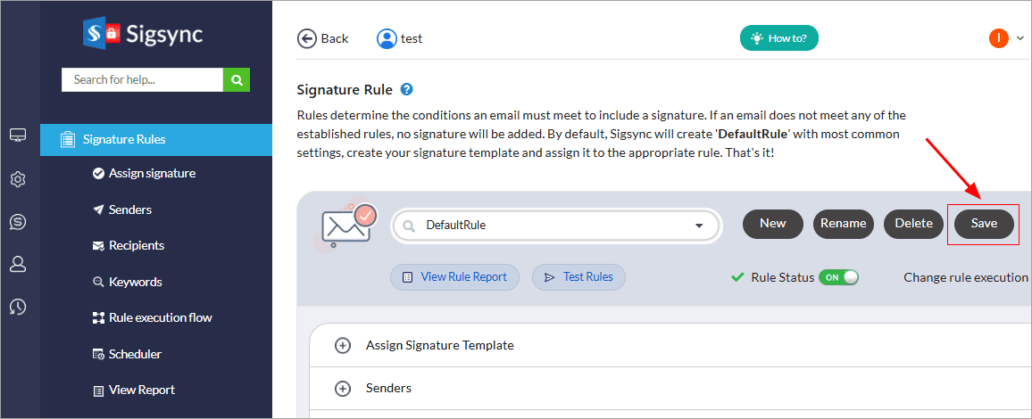 - Click the ‘Assign Signature Template’ tab and assign the required Signature Template