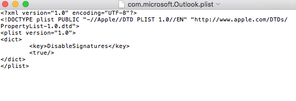 - You will get a file called com.microsoft.Outlook.plist that will have the exact contents shown in the screenshot below