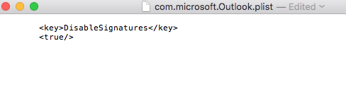 defaults write ~/Desktop/com.microsoft.Outlook.plist DisableSignatures -bool TRUE