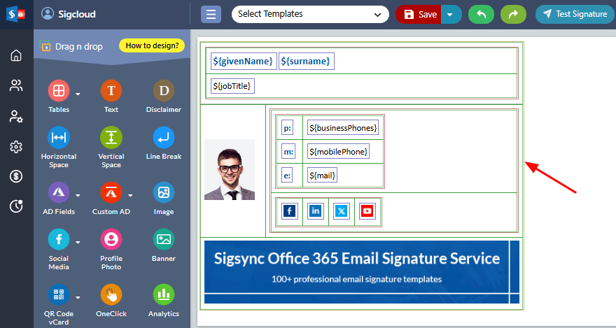You can adjust this directly in the Sigsync Signature Editor by following these steps: