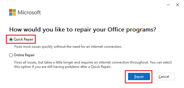 If your signature image display issues in Outlook are caused by corrupted Office files, you may be able to resolve them by repairing your Office Suite. Here's how: