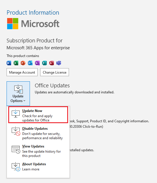 If the issue with your signature images not displaying correctly in Outlook is caused by a known bug, Microsoft may have already released a fix in a recent Office update. To update your Office software and check if the issue is resolved, follow these steps: