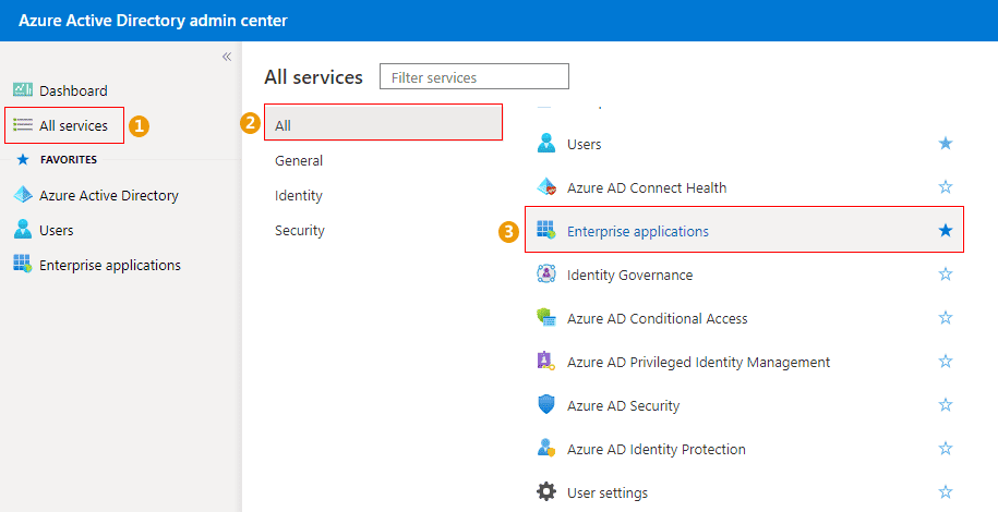 - From the navigation menu on your left, locate All services. Then, on the page that opens, choose Enterprise applications.