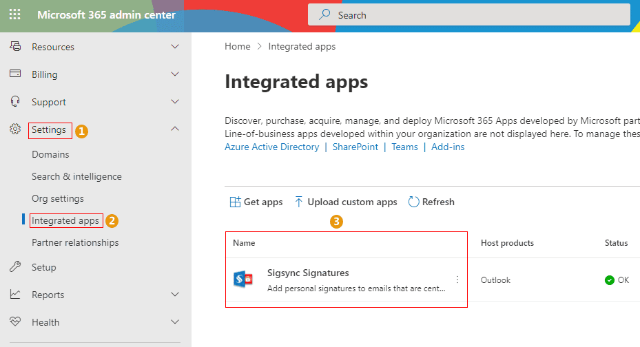 Follow the steps below to get the details of Sigsync installation in Microsoft 365