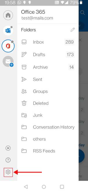 - Swipe the screen from the left to right to open the side menu and tap the ‘Settings’ icon.