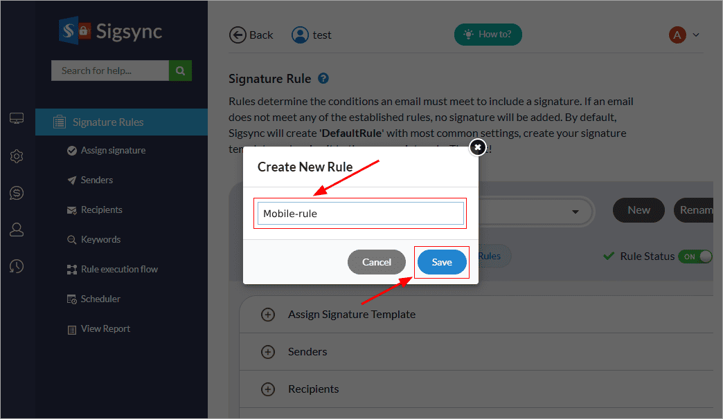 Step 2: Set signature rules in Sigsync based on your mobile default signature text