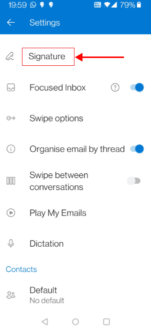 Note: In order to set up an email signature on your mobile device, it is important to follow these steps for each mobile email client. It is essential to ensure that the identifier phrase / keyword or email signature is entered correctly to ensure Sigsync software can identify the message / keyword accurately.