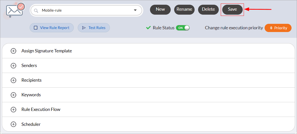 - Give a name to the rule, Example: ‘Mobile-rule’ and click the ‘Save’ button