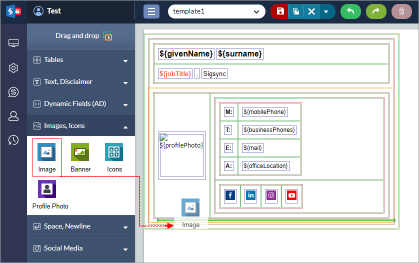 - Drag and drop the 'Image' component into the signature design area.