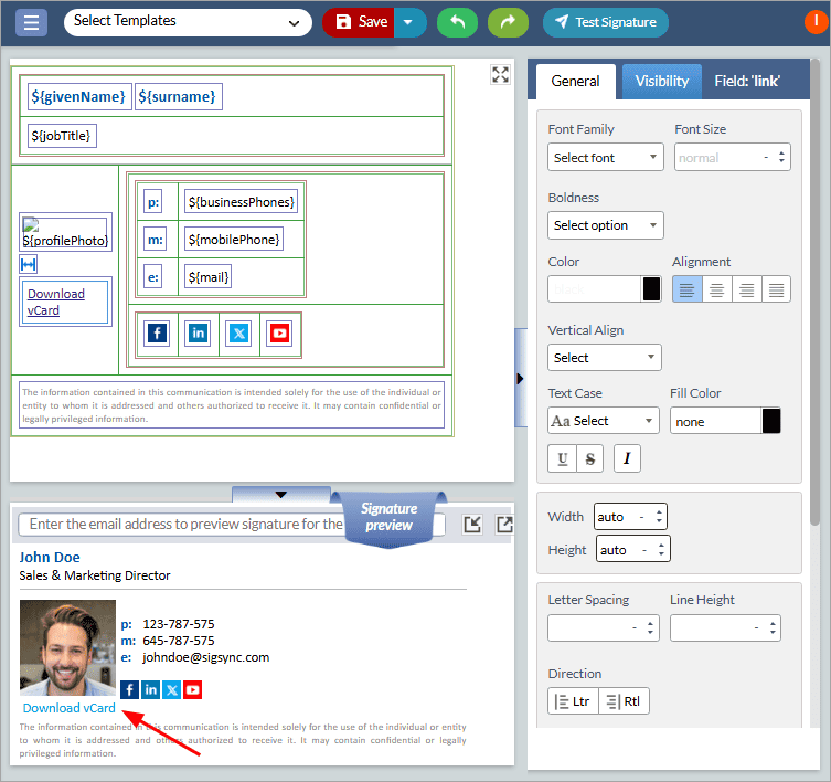 Insert vCard as QR Code in Email Signature using Sigsync
