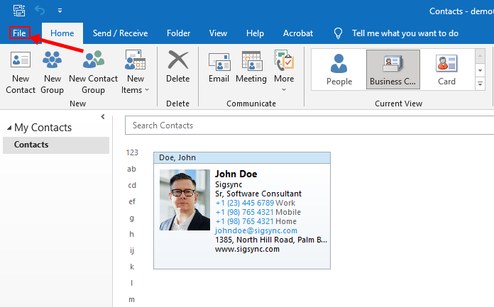 Steps to create a vCard in Outlook
